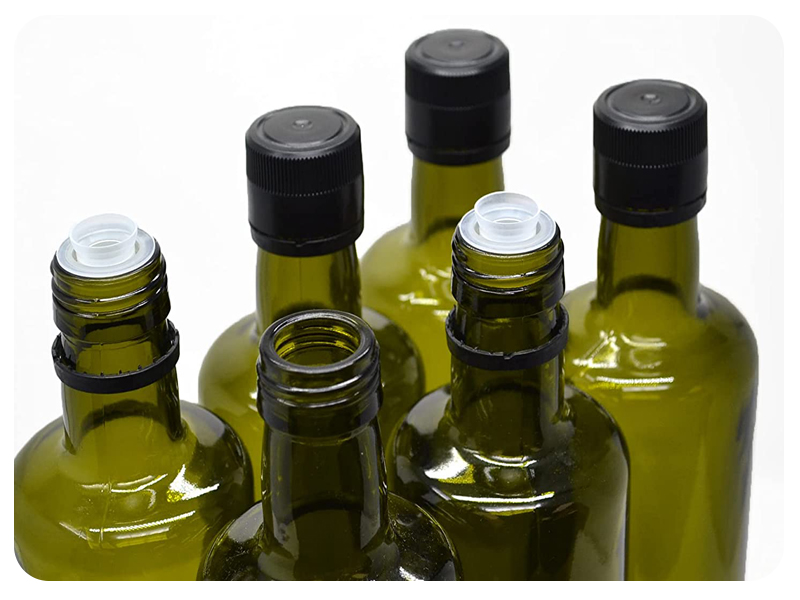 Olive oil pourers are specialized closures designed for olive oil bottles to control the pouring of oil and prevent drips or spills.